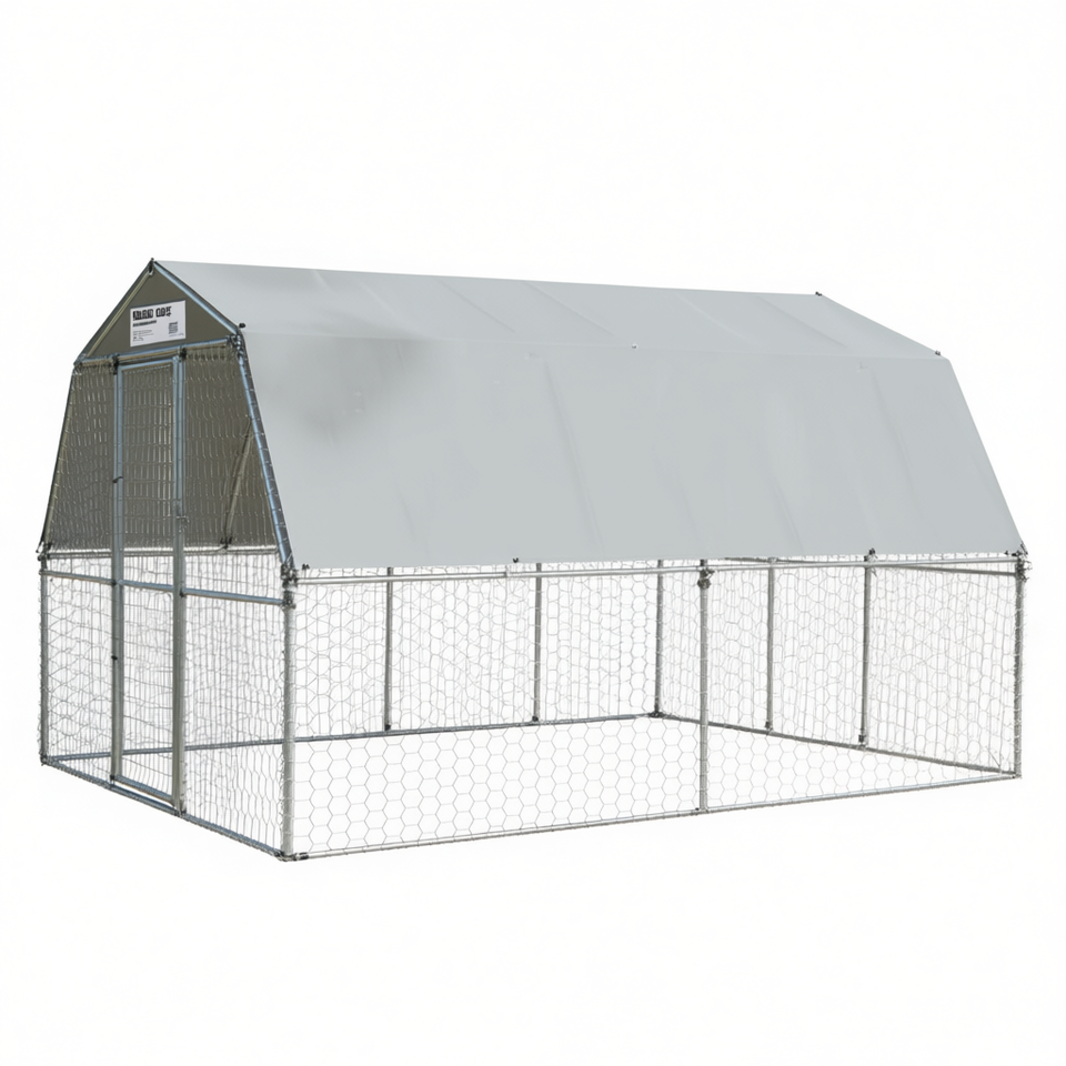 Silver Galvanized Steel Dog Cage With Roof And Door Outdoor Pet Enclosure Large Size
