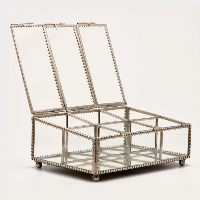 เครื่องประดับแก้วเงินกล่องตกแต่งจีนสำหรับงานแต่งงานแหวนที่ทันสมัยแหวนแหวนสร้อยคออัญมณีที่เก็บประติมากรรมหิน
