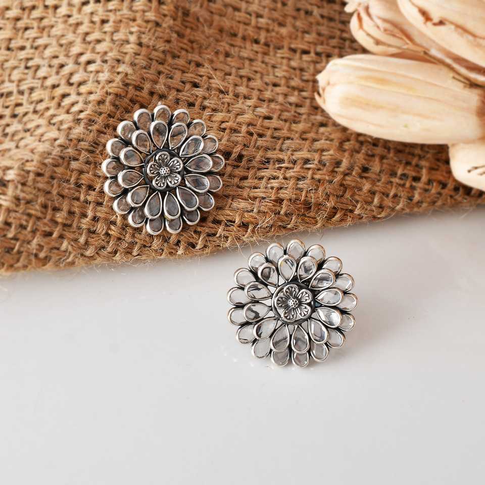 ต่างหูเงินทรงกลมเมera Jaipur เครื่องประดับแฟชั่น