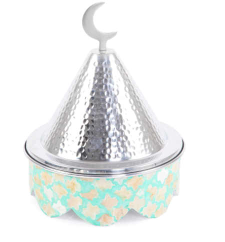 หม้ออุ่นอาหารทำจากโลหะทำด้วยมือสีเงินมันวาวเครื่องอุ่นอาหารทำจากสเตนเลส