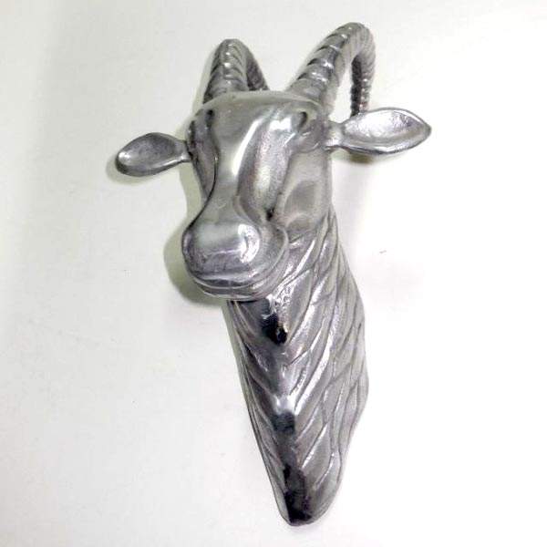 หัวติดผนังรูปแพะสีเงิน,หัวติดผนังตกแต่งลายสัตว์สำหรับตกแต่งโรงแรมและสำนักงาน