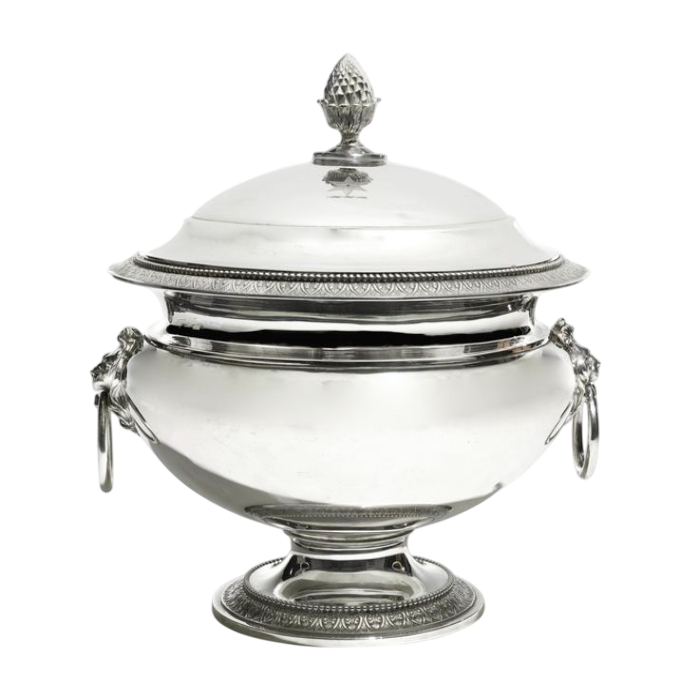 หม้อต้มน้ำซุปทำจากสเตนเลสสตีลที่อุ่นอาหารดีไซน์หรูหราเคลือบทองเงินพร้อมลายดอกไม้