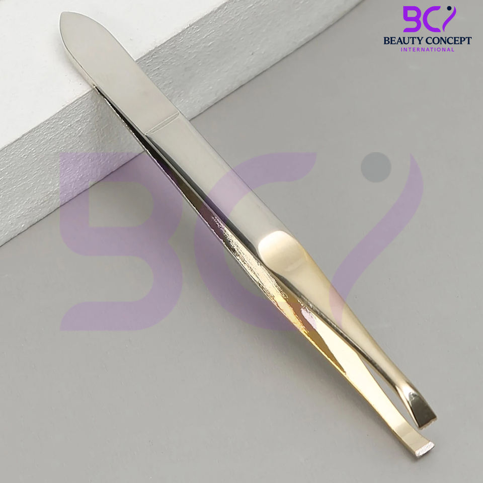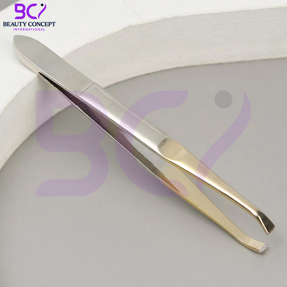 แหนบคิ้วสีเงินสีทอง สแตนเลสสตีล ปลายเฉียงความแม่นยำสูง น้ำหนักเบา ใช้ซ้ำได้ ทนทาน กำจัดขนบนใบหน้า