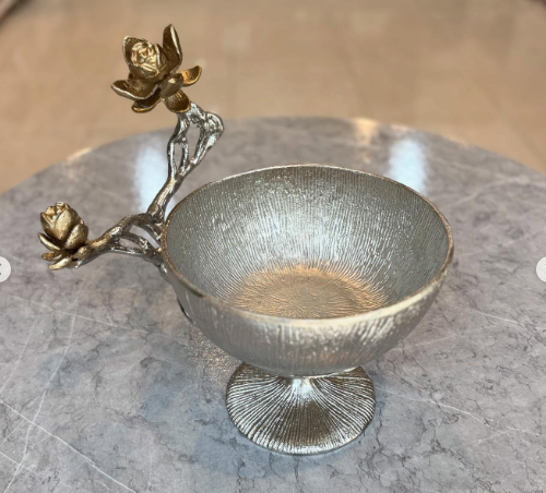 ชามใส่อาหารลายดอกไม้สีเงินสีทองถาดใส่อาหารแบบตั้งสำหรับคุกกี้และเค้กชามใส่ถั่วถาดโลหะ