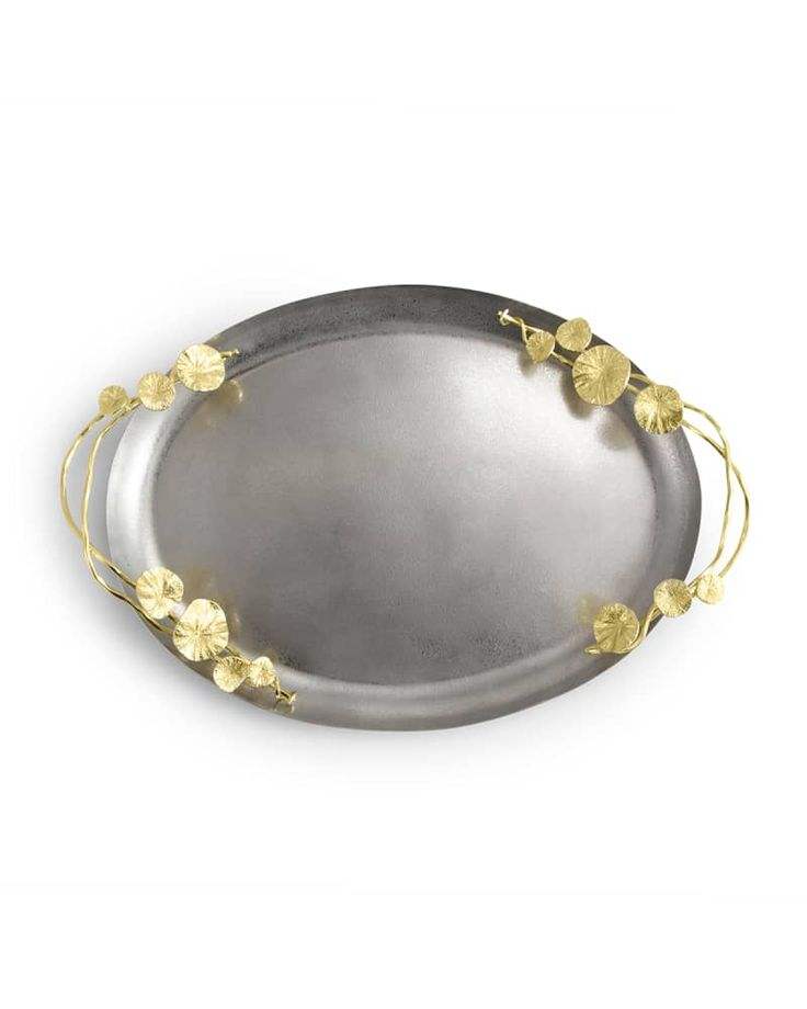 ถาดเสิร์ฟโลหะเคลือบเงินทอง ดีไซน์หรูหรา ทนทาน รูปทรงสี่เหลี่ยมผืนผ้า ลายผลไม้ ใช้งานได้หลากหลาย เหมาะสำหรับเสิร์ฟและตกแต่ง