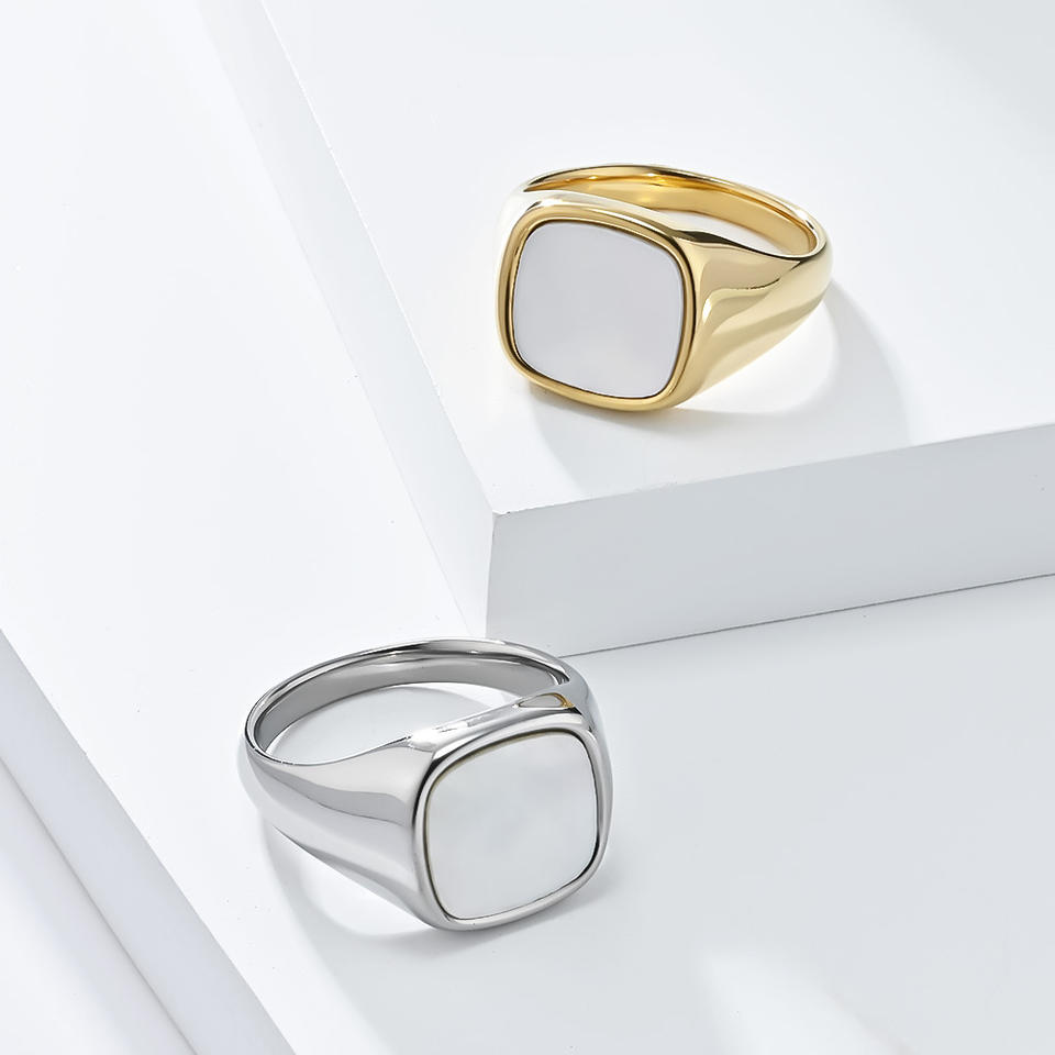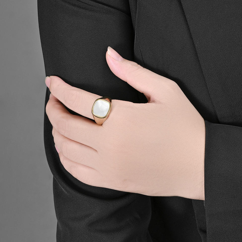 แหวนไทเทเนียมทรงสี่เหลี่ยมสีเงินสีทอง ดีไซน์เรขาคณิต สำหรับทุกเพศ เหมาะเป็นของขวัญ เครื่องประดับแฟชั่น