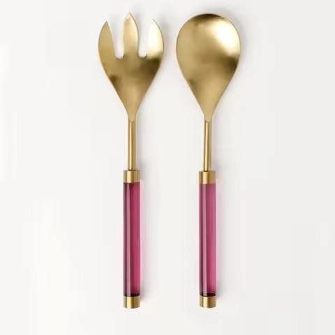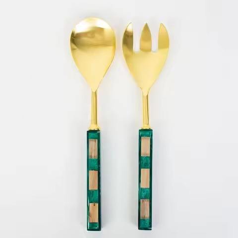 ชุดเสิร์ฟสลัดสแตนเลสชุบเงิน ด้ามจับลายตอกเงิน สำหรับงานแต่งงาน