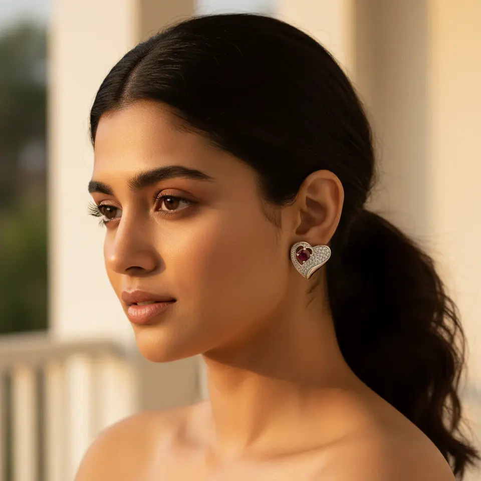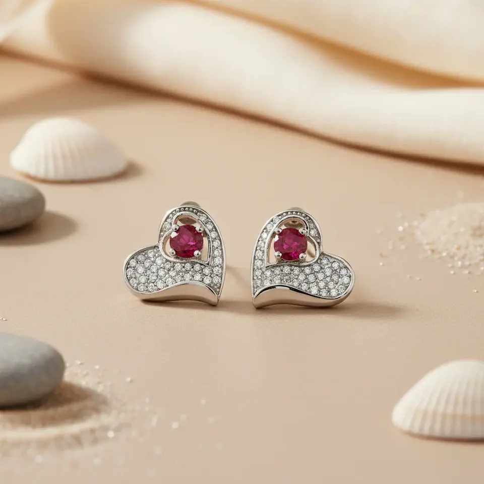 ต่างหูเงินรูปหัวใจประดับทับทิม ทรงกรอบ ดีไซน์น่ารัก ชุบโรเดียม แพลตตินัม สำหรับงานแต่งงาน งานหมั้น งานครบรอบ งานเลี้ยง ของขวัญ