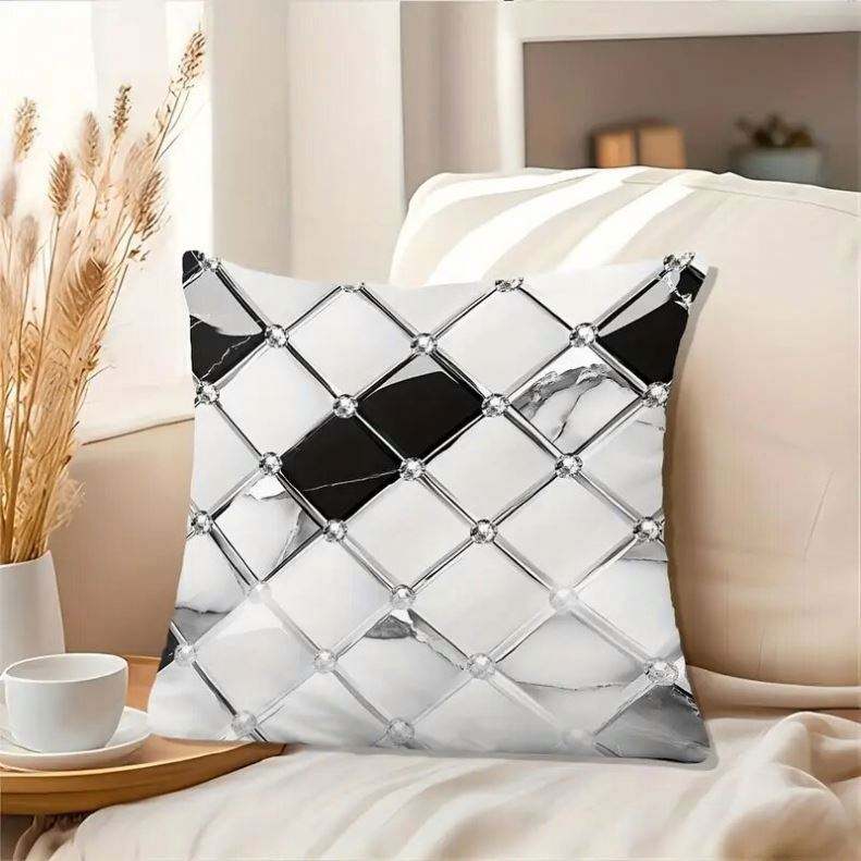 ปลอกหมอนอิงลายศิลปะคุณภาพสูงสีเงินปลอกหมอนอิงลายตาหมากรุกสีดำและสีขาว