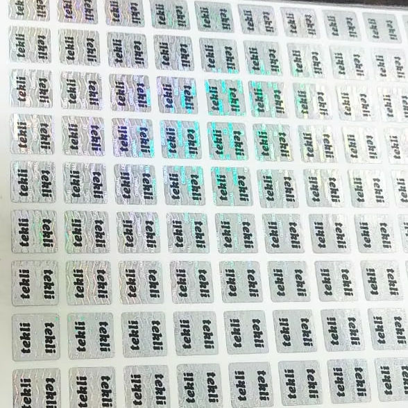 สติกเกอร์โฮโลแกรม PET สีเงิน ป้องกันการปลอมแปลง ทนทาน กันน้ำ พิมพ์ด้วยความร้อน เป็นมิตรกับสิ่งแวดล้อม พร้อมบาร์โค้ด