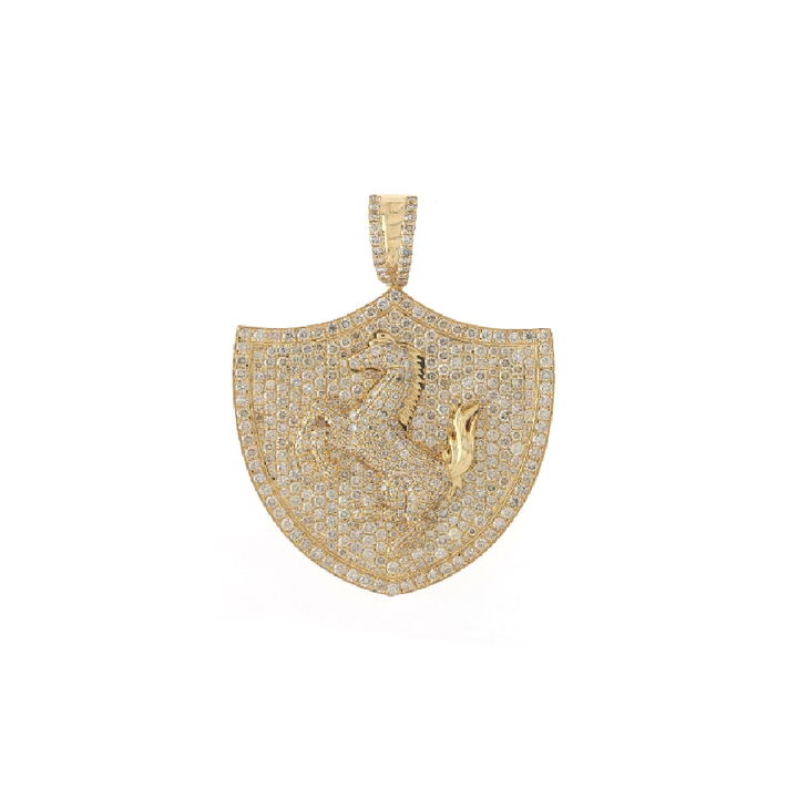 925จี้รูปโล่ม้าสีเงินประดับด้วยเพชรโมอิสชุบทองสไตล์คริสเตียนเครื่องประดับของขวัญแบบลำลอง/แนวสปอร์ตใช้ได้ทั้งชายและหญิง-ขายส่ง