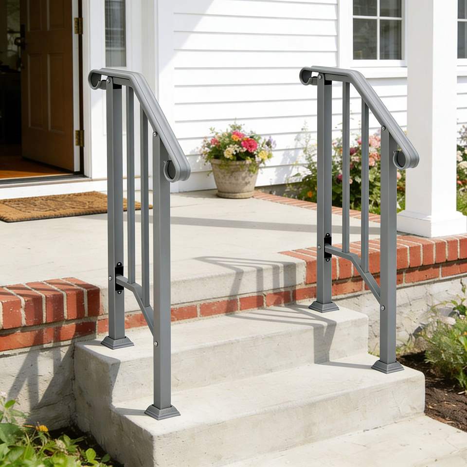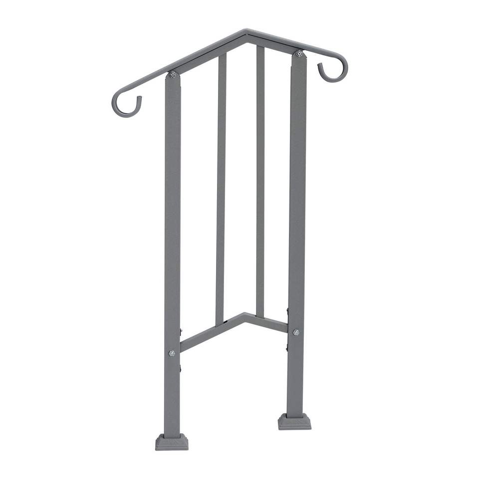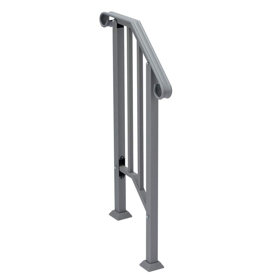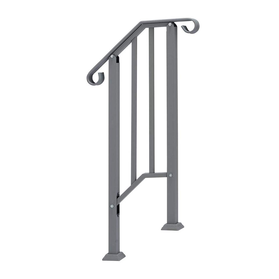 ราวจับเหล็กสีเงินสำหรับขั้นบันไดกลางแจ้ง อุปกรณ์ช่วยพยุงขั้นบันไดแบบ 1 ขั้น พร้อมชุดติดตั้ง