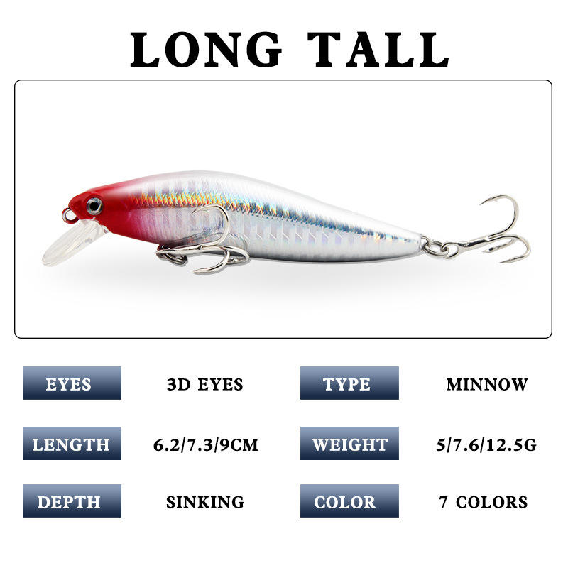 เหยื่อปลอม Silver Knife II Minnow ขนาด 12 ซม. น้ำหนัก 15 กรัม สำหรับตกปลาแบส ระบบเกียร์คงที่ พร้อมตะขอแบบมีร่องเลือด