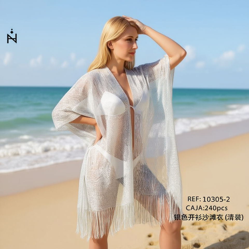 เสื้อคลุมชายหาดถักสีเงินมีขอบสำหรับเสื้อนอกชุดว่ายน้ำของผู้หญิง