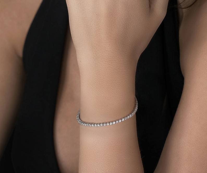สร้อยข้อมือเทนนิสเพชรซิลเวอร์แล็บพร้อมตัวล็อคแบบปลอดภัย สี DEF ความใส VVS VS น้ำหนัก 12 กรัม ชุบทอง พร้อมส่งออกขายส่ง