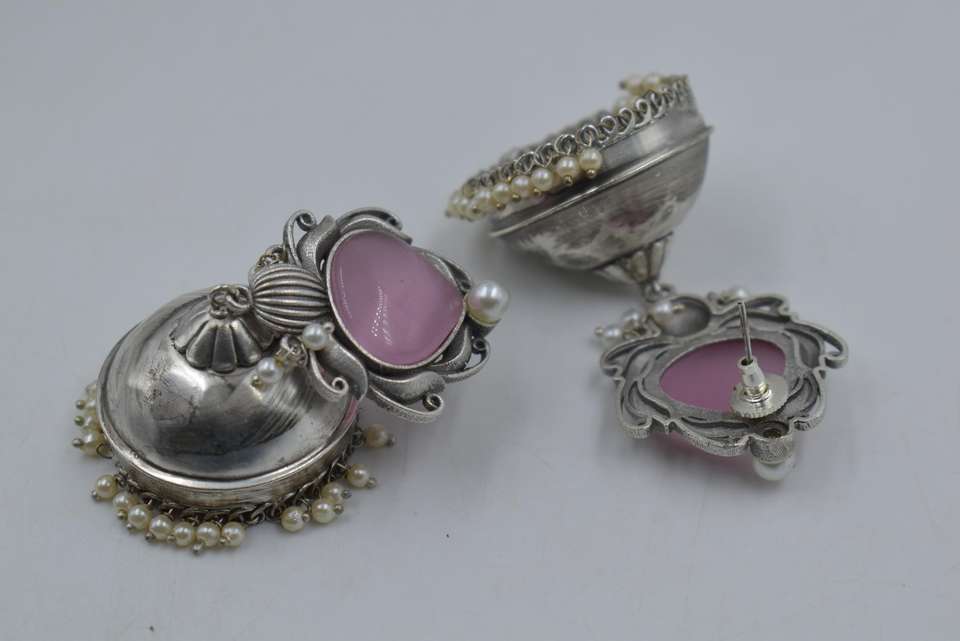 ต่างหูจัมก้าสตั๊ดหินสีเงินดูเหมือนกันเครื่องประดับแฟชั่นที่สวยงามสําหรับเด็กหญิงและผู้หญิงในราคาสมเหตุสมผล