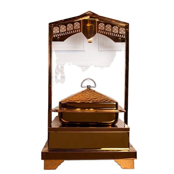 โคมไฟทรงกลมทรงโดมสำหรับอุ่นอาหารทรงสี่เหลี่ยมผืนผ้าพร้อมฝาบานพับอุปกรณ์สำหรับร้านอาหารสีเงินหรูหรา