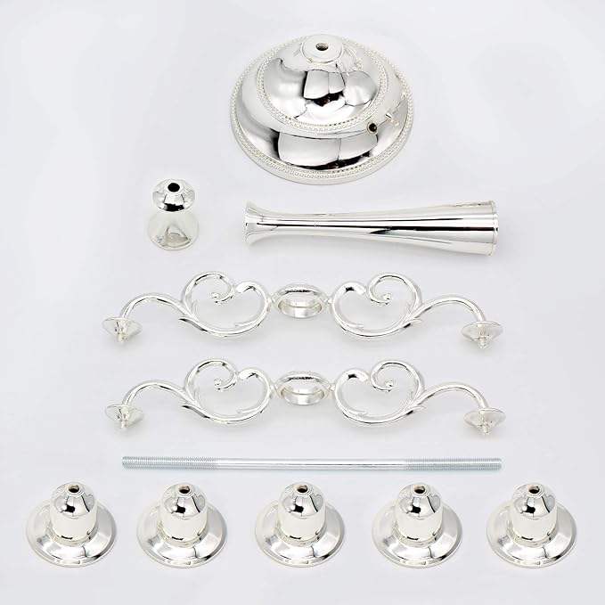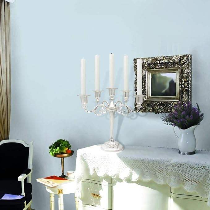 ชุดเชิงเทียนโลหะสีเงิน 5 ชิ้น เชิงเทียนสามแขน ตกแต่งบ้าน ขนาด 25 ซม. ทำจากสแตนเลส