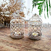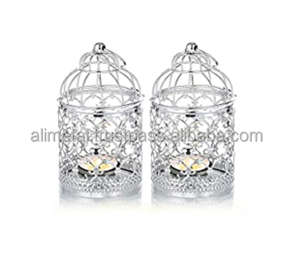 Silver Metal Bird Cage Decorative Candle Lantern Hollow Iron Candle Holder Tea Light for Home Decoration Hanging Bird Cage