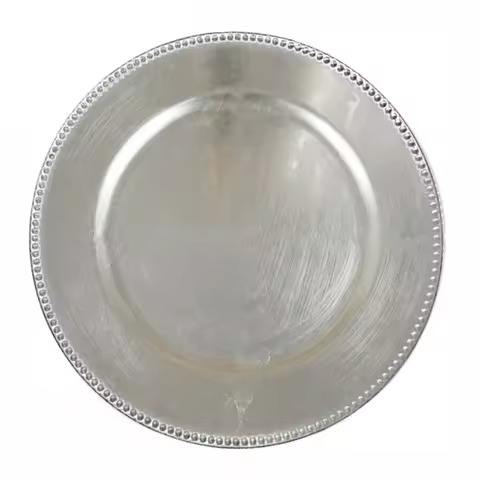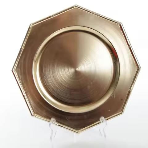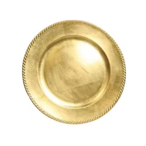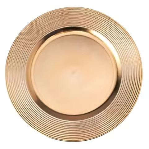 จานรองโลหะสีเงินทรงกลมชุบทองสำหรับตกแต่งโต๊ะอาหารในงานเลี้ยง