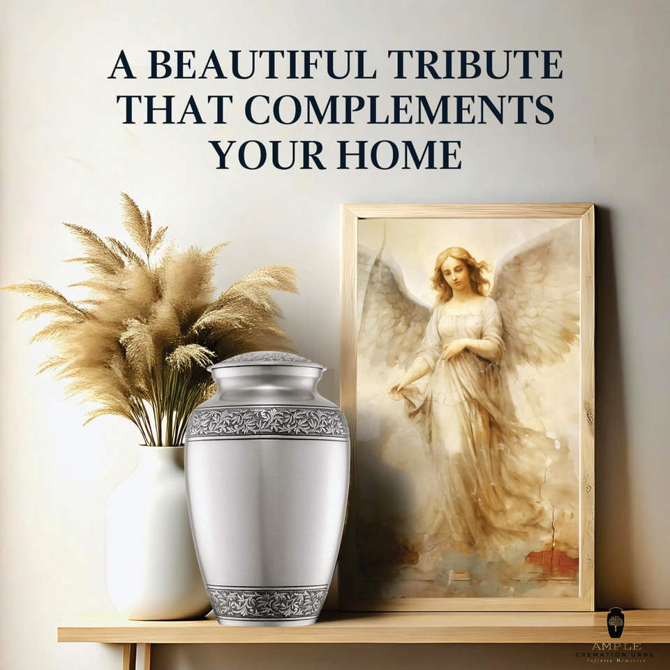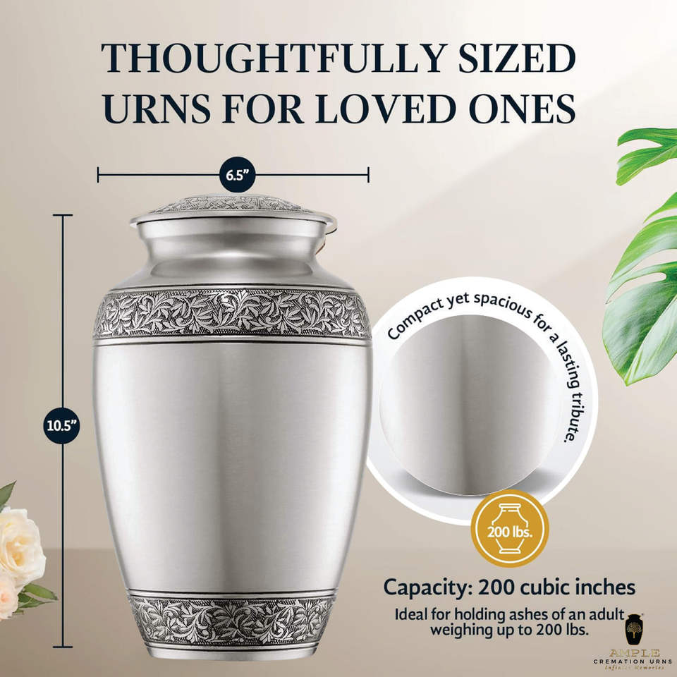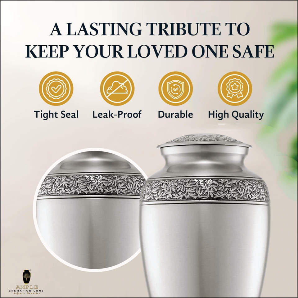 โกศบรรจุอัฐิโลหะสีเงินสำหรับบรรจุเถ้ากระดูกมนุษย์ | โกศบรรจุอัฐิสำหรับผู้ใหญ่แบบสลักลาย ดีไซน์ปรับแต่งได้ | คลาสสิค อีโค่เฟรนด์ลี่ 220 คิวบิก
