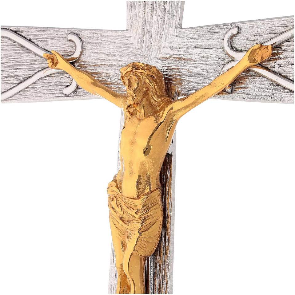 ไม้กางเขนโลหะสีเงินพร้อมไม้กางเขนสีทองประดับผนังศาสนาคาทอลิกคริสเตียนสำหรับตกแต่งบ้านโบสถ์แท่นแสดงของตกแต่ง