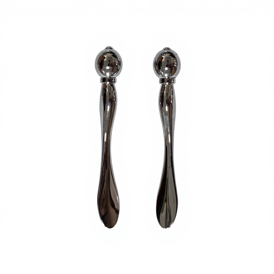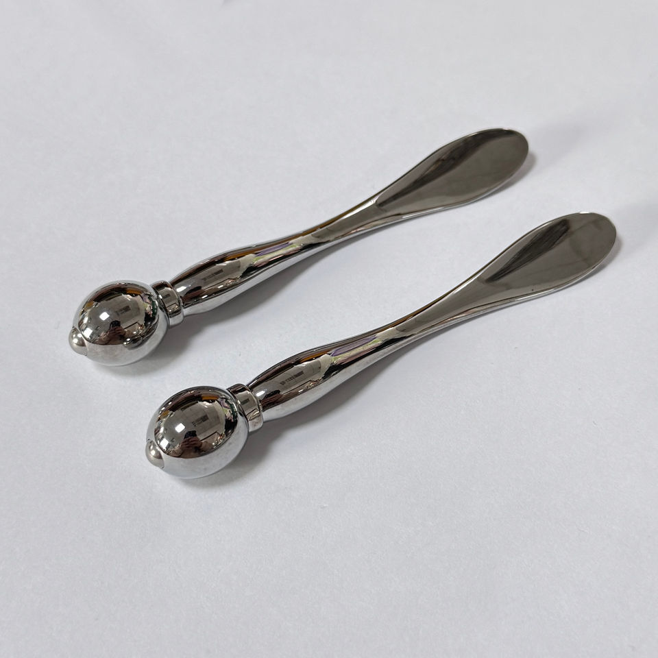 เครื่องนวดหน้าแบบช้อนสำหรับทาครีมบำรุงรอบดวงตา ทำจากโลหะสีเงิน อุปกรณ์เสริมความงาม