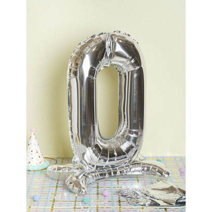 Silver Metallic Standing Number 0 Balloon Set Happy Birthday Party Decorations for Mother's Day Graduation Chinese New Year