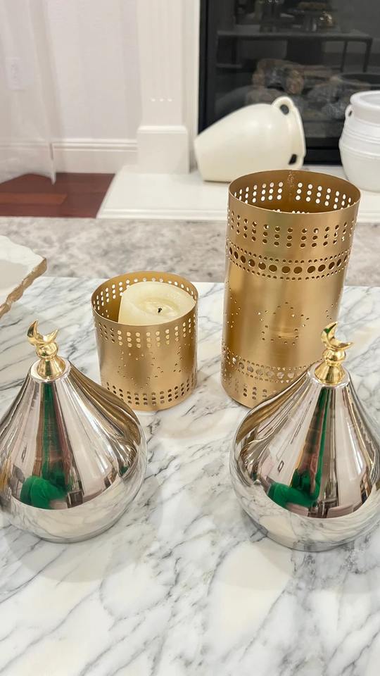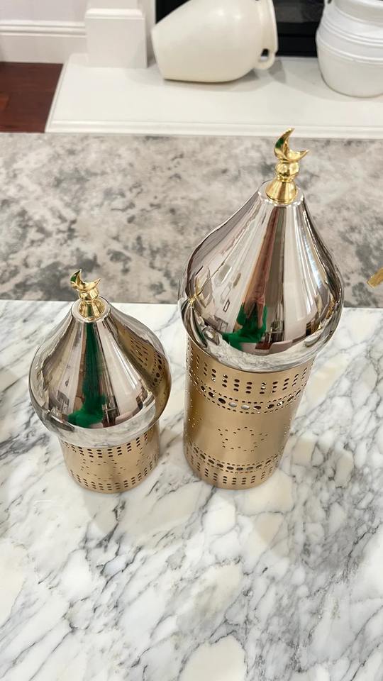 เชิงเทียนทรงมินาเร็ตสีเงินและของตกแต่งรอมฎอน ผลิตภัณฑ์ตกแต่งบ้านทำมือรักษ์โลกสำหรับเทศกาลอีสเตอร์
