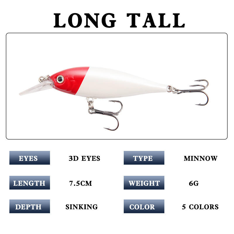 เหยื่อปลอมซิลเวอร์มินโนว์ 70 มม. 6 กรัม แบบจม สำหรับตกปลาแบส เหยื่อตกปลาแบบตีล่าง อุปกรณ์ตกปลา