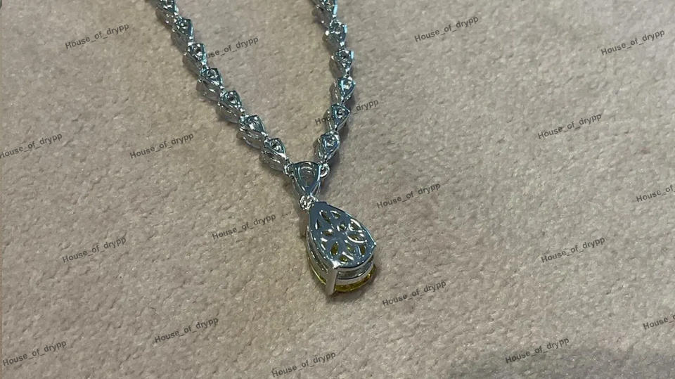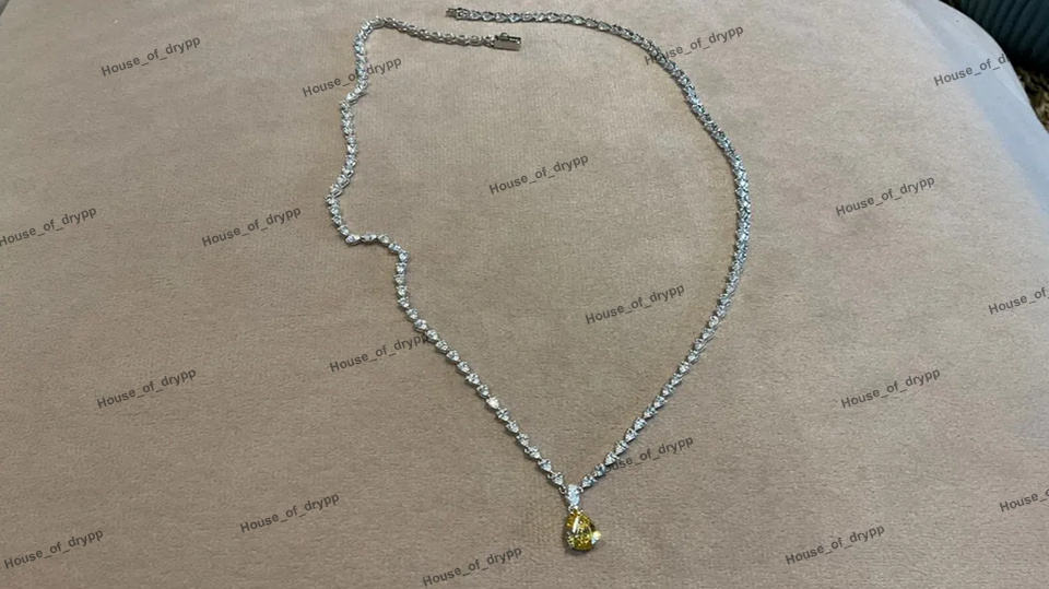 Silver Moissanite Diamond Y Drop Necklace Silver Pear Shape Pendant Sparkling Elegant Luxury Daily Party Wear Necklace