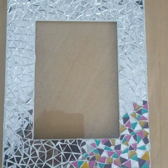 กรอบรูปเรซิ่นลายโมเสคสีเงิน ของตกแต่งบ้าน ติดผนัง ที่วางรูปภาพ ของตกแต่งตั้งโต๊ะ งานฝีมือฝังลายศิลปะ
