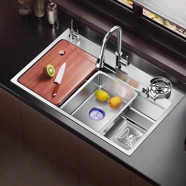 อ่างล้างจานสแตนเลส 304 นาโนสีเงิน อ่างเดี่ยวขนาดใหญ่สำหรับครัวเรือน อ่างล้างผักแบบหนา