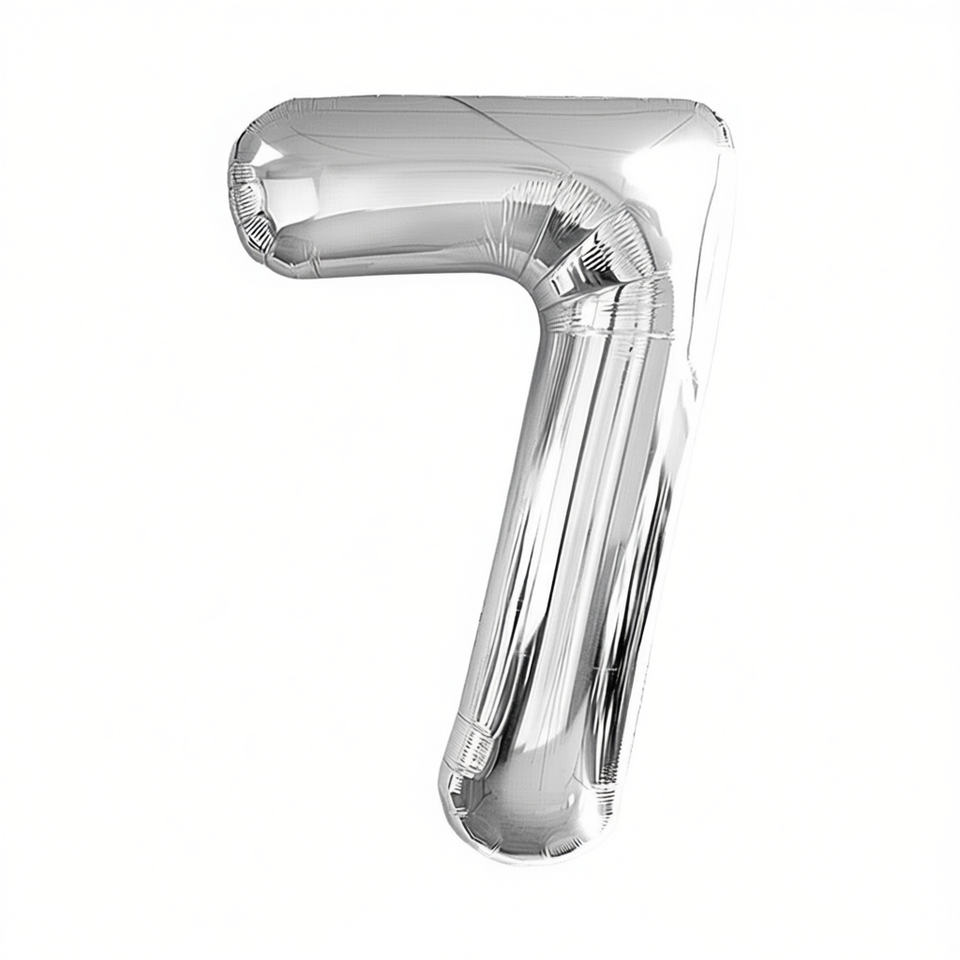ลูกโป่งฟอยล์สีเงินเมทัลลิกหมายเลข 7 ขนาด 45 ซม. สำหรับตกแต่งงานปาร์ตี้