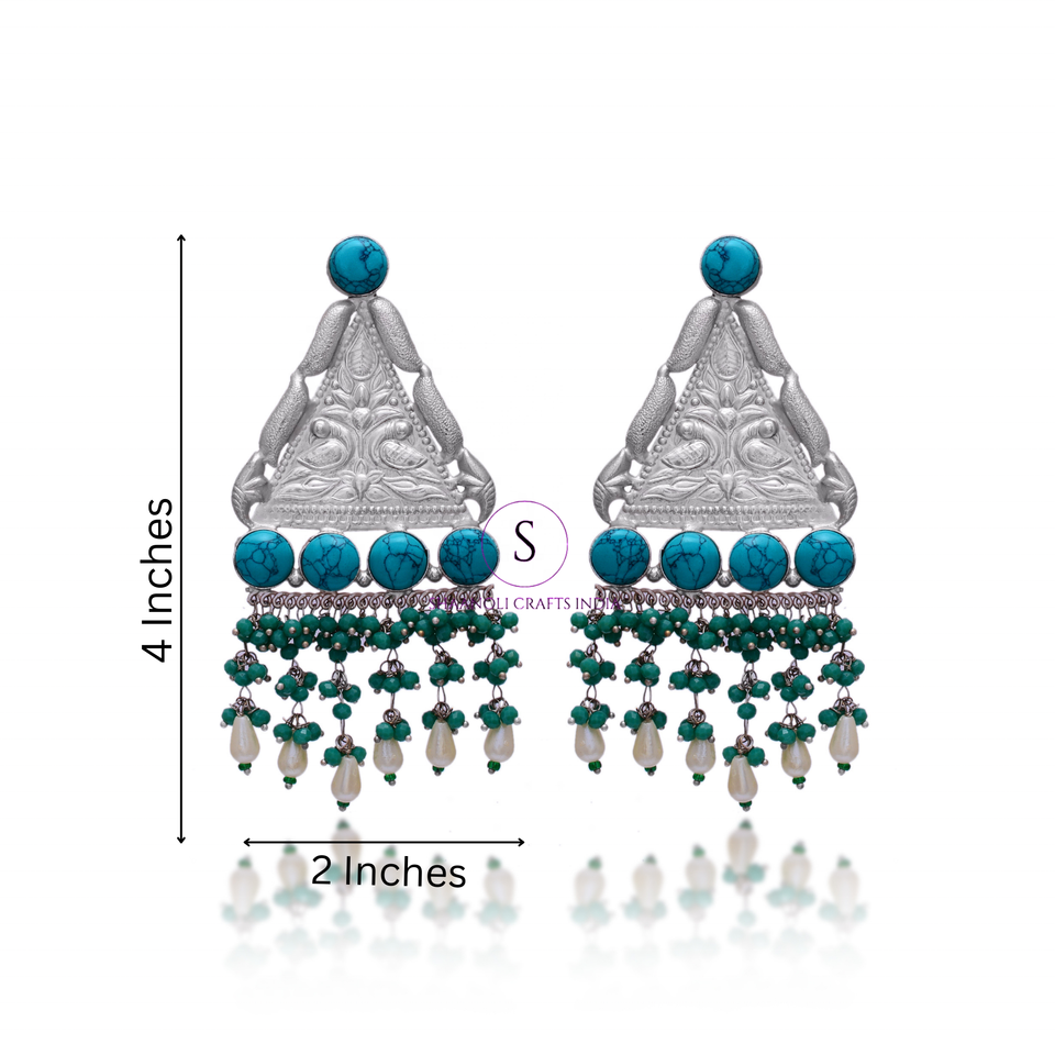 ต่างหูหินสีฟ้าสามเหลี่ยมยาวดีไซน์เนอร์สำหรับผู้หญิงและเด็กผู้หญิงสำหรับงานแต่งงานและ haldi