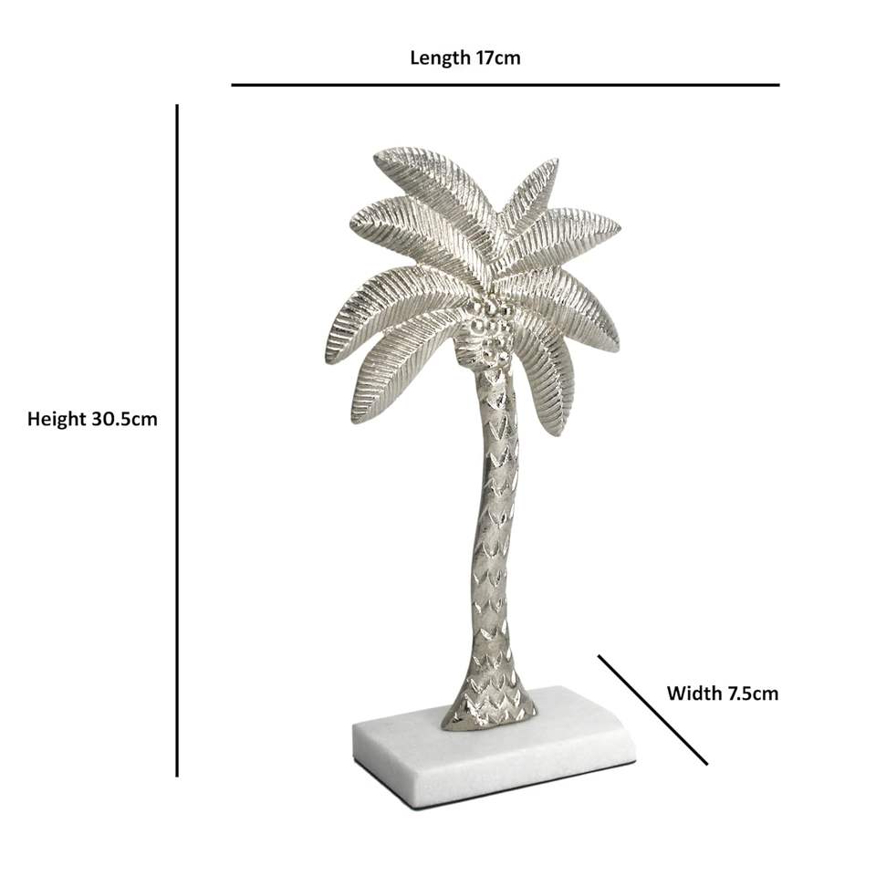 รูปปั้นรูปต้นปาล์มสีเงินประดับด้วยฐานหินอ่อนสีขาวสำหรับตกแต่งบ้านสไตล์เขตร้อนและทันสมัย