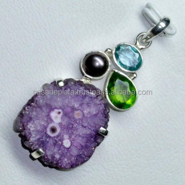 จี้เงิน,จี้บุษราคัมและเพอริโดสีฟ้าจี้เงินแท้925จี้แฮนด์เมด X1653
