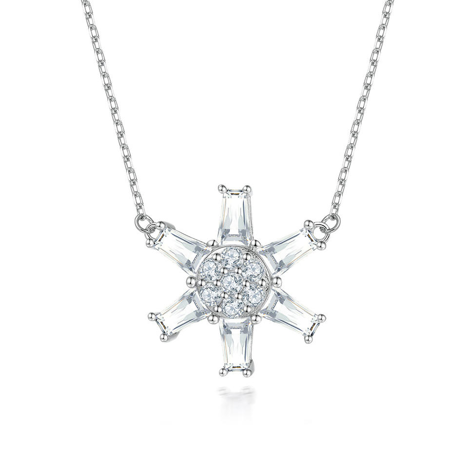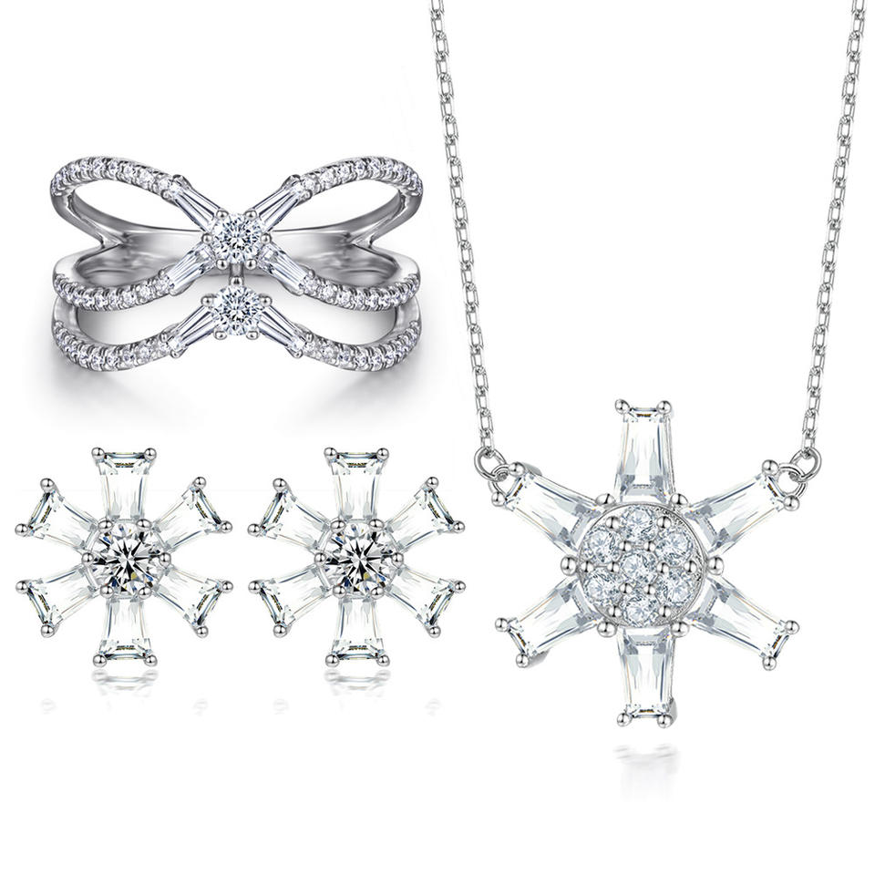 ชุดเครื่องประดับหินเซอร์โคเนียรูปดอกไม้จี้เงินพร้อมเพทายสีขาวสำหรับผู้หญิง