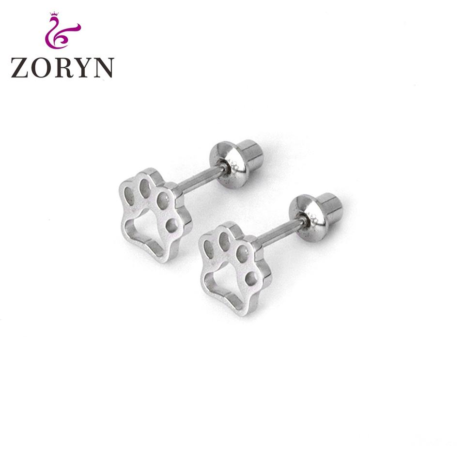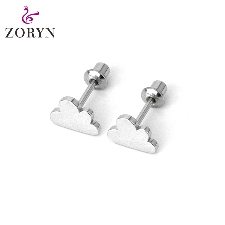 ต่างหูสกรูหลังแบบเกลียวชุบเงิน 316L สีม่วงมินิมอลประดับเพชรคิวบิกเซอร์โคเนีย ดีไซน์เก๋ ทนทาน คุณภาพสูง เครื่องประดับหรูหรา