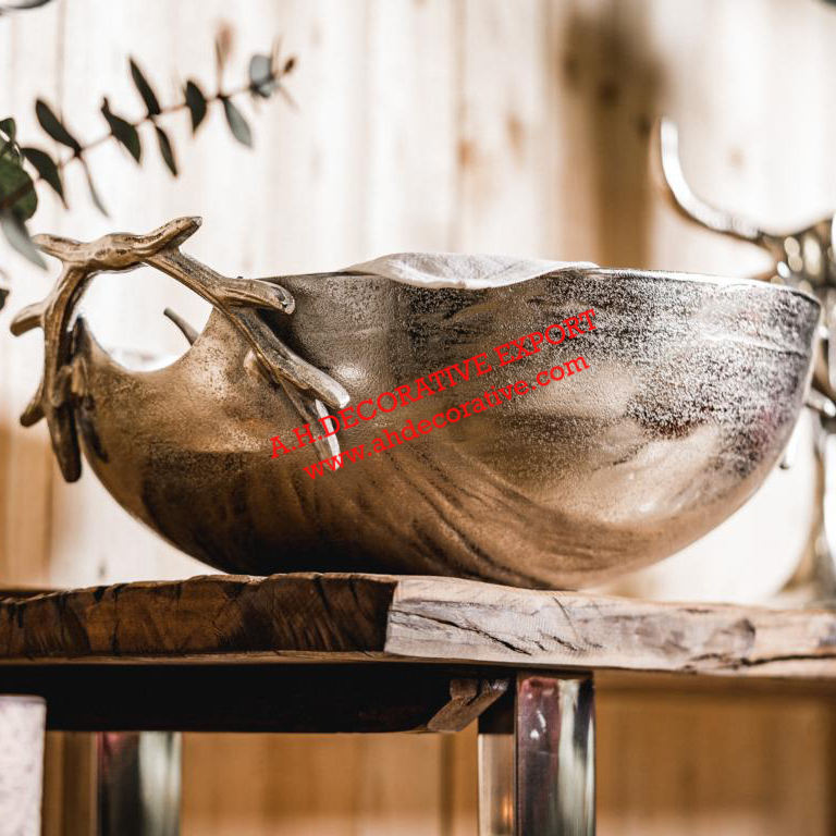 เขากวางชุบเงินชามผลไม้ทำจากโลหะขัดเงาตกแต่งโต๊ะสำหรับงานแต่งงานและโต๊ะรับประทานอาหาร