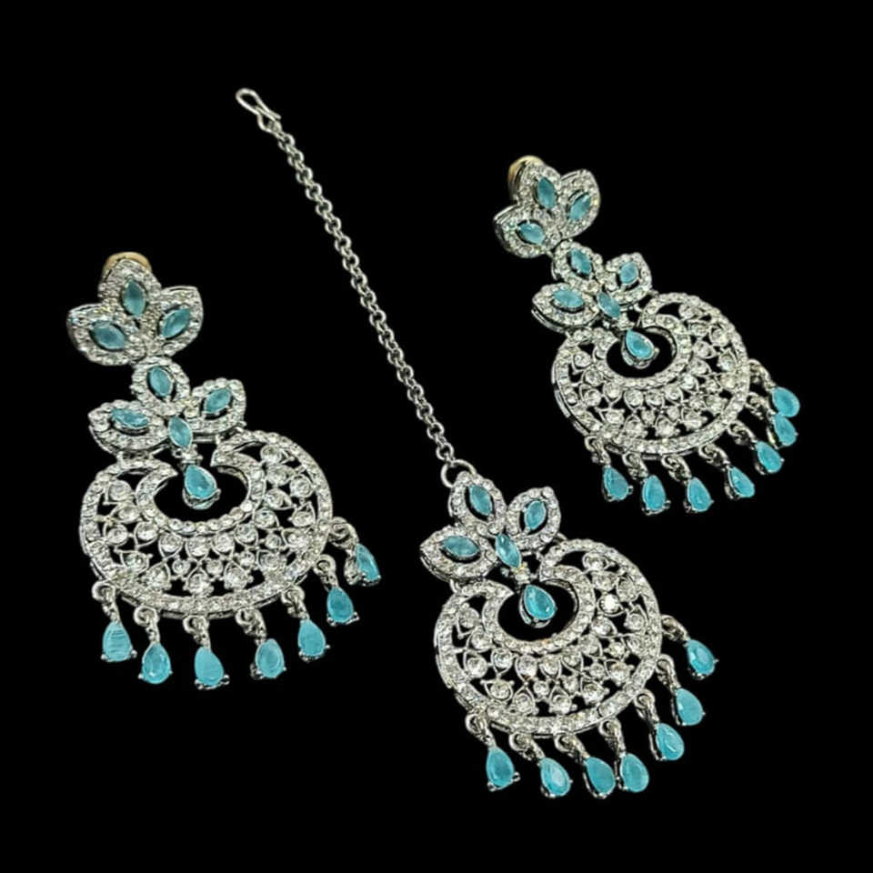 ต่างหูห้อยหินชุบเงินออสเตรียพร้อมเครื่องประดับแฟชั่น Maangtikka