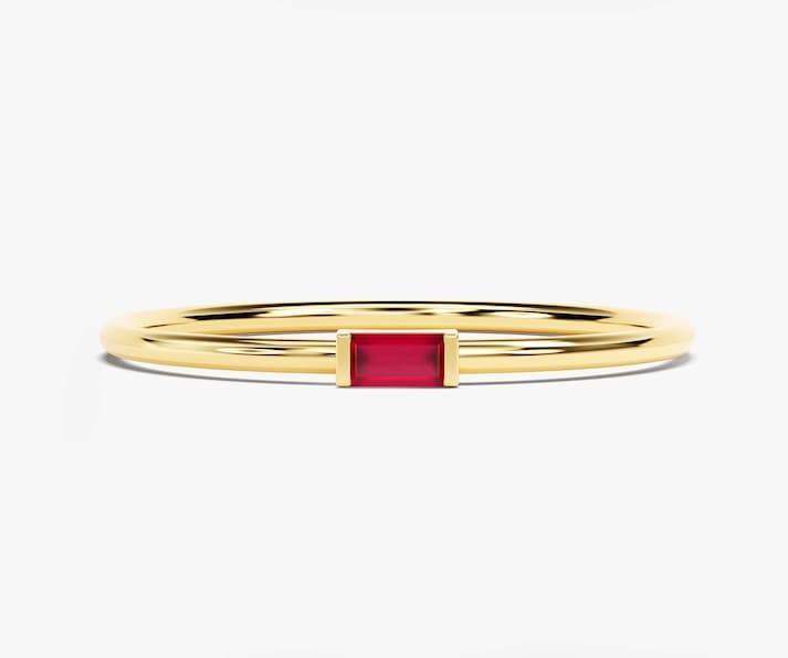 Keyword:14K Gold Plated Bezel Set Baguette Birthstone Ring Elegant Jewelry