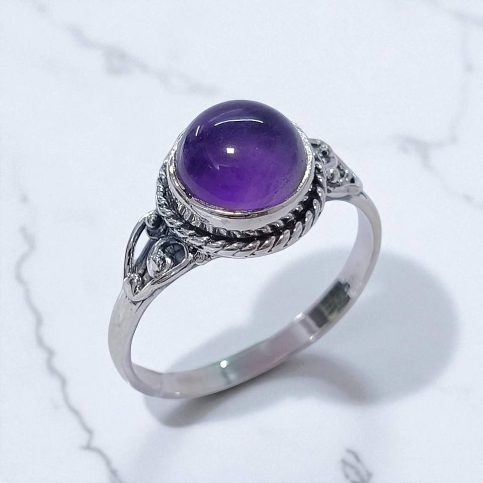 แหวนพลอยชุบเงินพร้อมหินธรรมชาติและกรอบแบบคลาสสิกของขวัญสำหรับทุกเพศสำหรับงานหมั้นหรืองานแต่งงานแบบคลาสสิก