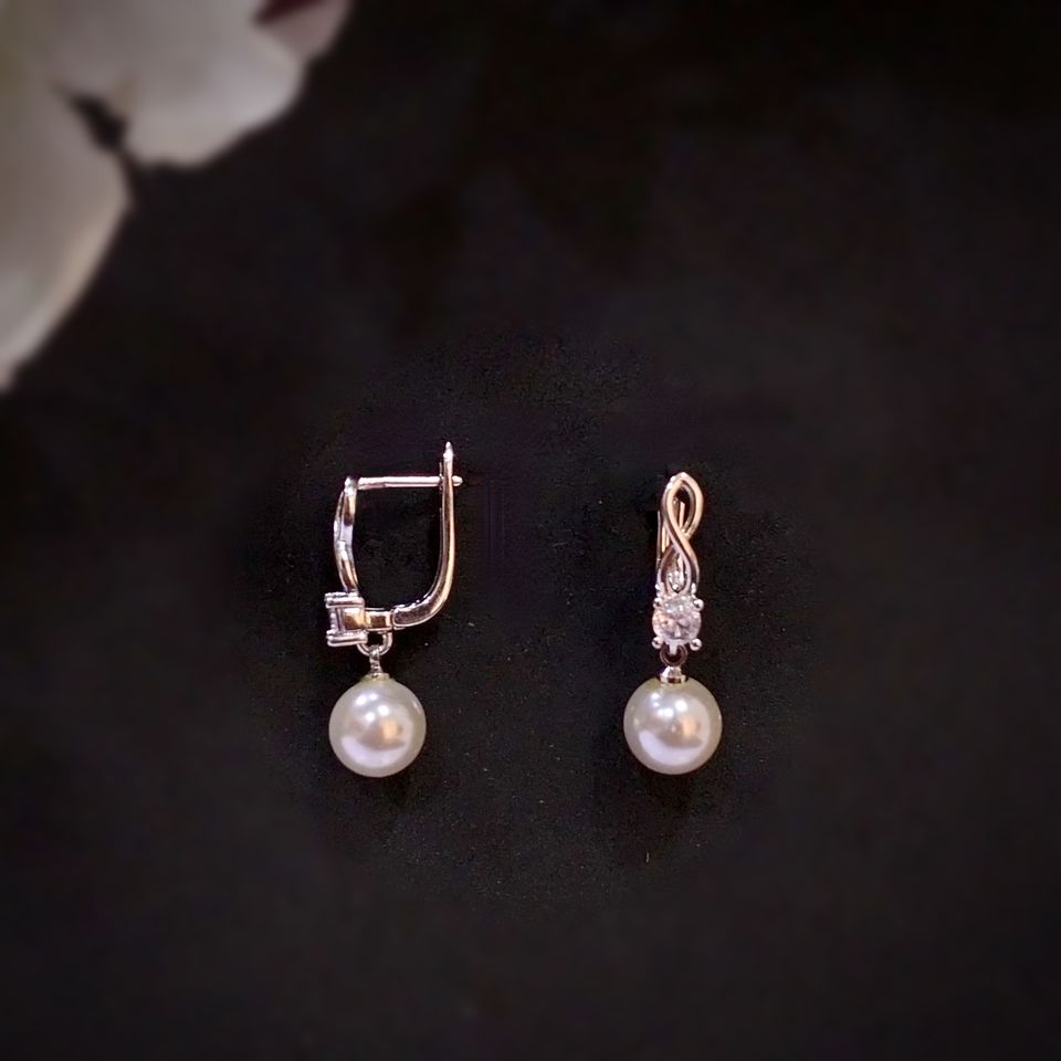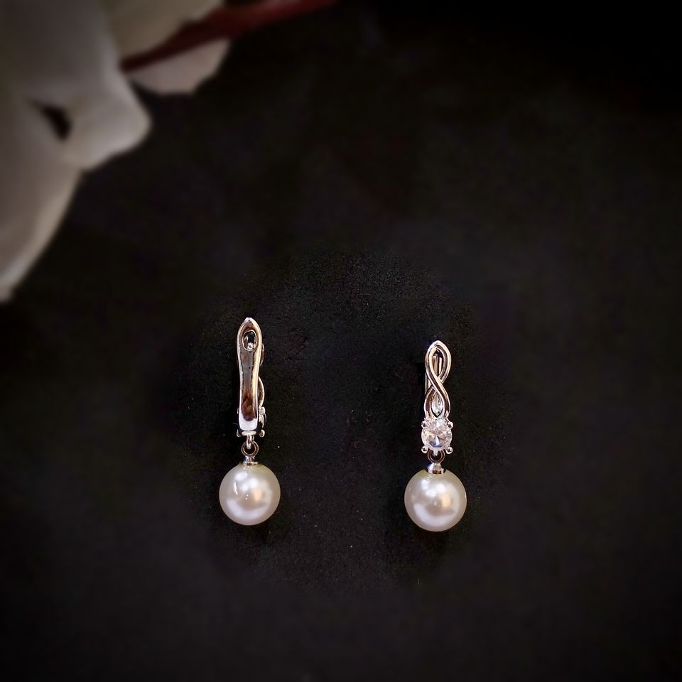 ต่างหูมุกน้ำจืดดีไซน์อินฟินิตี้ชุบเงินและชุบทองสำหรับผู้หญิง เครื่องประดับแฟชั่น