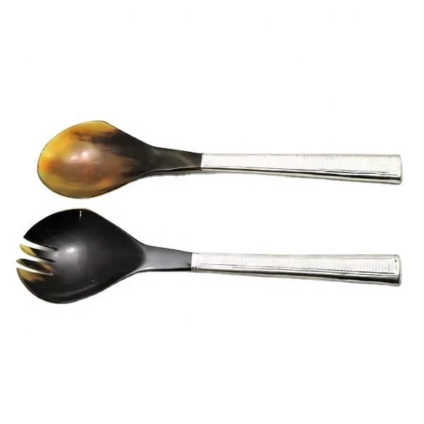 ชุดช้อนสลัดฮอร์นด้ามชุบเงินชุดช้อนเสิร์ฟสลัดแบบใสเครื่องมือแตรงานครัวของขวัญแฟนซีงานขึ้นบ้านใหม่ขายส่ง