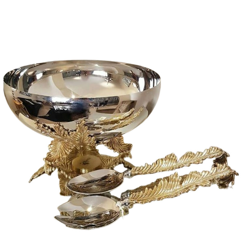 ชามอลูมิเนียมทำจากเรซินดีไซน์รูปใบไม้ชุบเงินใช้ตกแต่งโรงแรมพร้อมชามช้อนส้อม