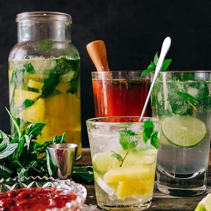 ช้อนผสมค็อกเทลโลหะแบบใช้ซ้ำได้ช้อนคนเครื่องดื่มแบบผสมช้อนยาวช้อนคนค็อกเทลแบบใช้ซ้ำได้ดีไซน์หรูหราชุบเงิน