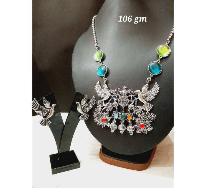 ชุดสร้อยคอชุบเงินสำหรับงานแต่งงานของฮินดูผู้หญิงชุดจี้หินควอตซ์ดีไซน์นกสร้อยคอแฟชั่นหลากสี
