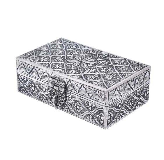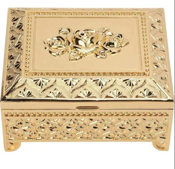 กล่องเก็บเครื่องประดับโลหะทรงสี่เหลี่ยมชุบเงิน สำหรับเก็บเครื่องประดับอย่างมีสไตล์ ทำจากทองเหลือง