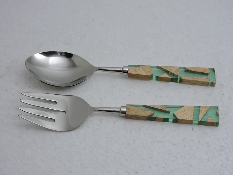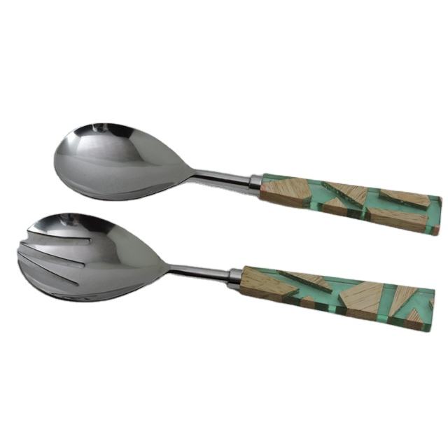 เซิร์ฟเวอร์สลัดสแตนเลสชุบเงินและด้ามจับไม้และเรซินและไม้อุปกรณ์เสริมผลิตภัณฑ์ใหม่ไอเดียบ้านและห้องครัว